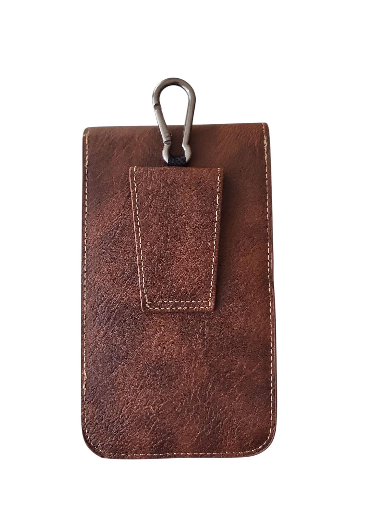 3 colours: (black-brown-wine red) Leather Phone Holster Belt Pouch, Slim Double Pocket for Men Phone Waist Bag Vertical Universal Outdoor Belt Pouch with Belt Loop Carabiner